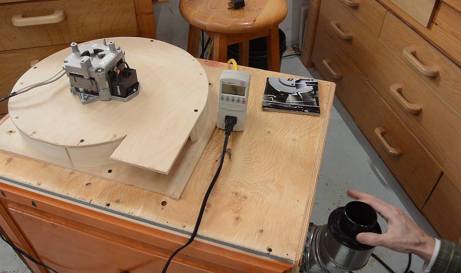I was experimenting with using a motor from a dishwasher to make a blower for another mini dust collector. The motor was more powerful than the furnace exhaust blower motors I used here, so I could build a bigger blower with more suction.