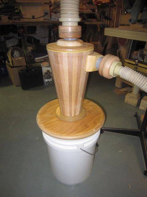 Peter Fabricius writes: Hi Matthias I enjoyed your building project of the small dust collector. Lots of technical info that I was not aware of. I built the cyclone designed by Ron Walters. It is small and sits under the small table for my belt sander. It is powered by the house central vac system. The big deal for me is that the filter bag stays clean and therefore has consistent suction, all my shop debris goes into the cyclone and then the 5 gal pail under it. So it's easy to empty out and it is very efficient. I never see sawdust in the central vac bag anymore. Nothing but the greatest. Please pass my comments to Ron with a big thanks. Peter Fabricius Hanover, Ontario