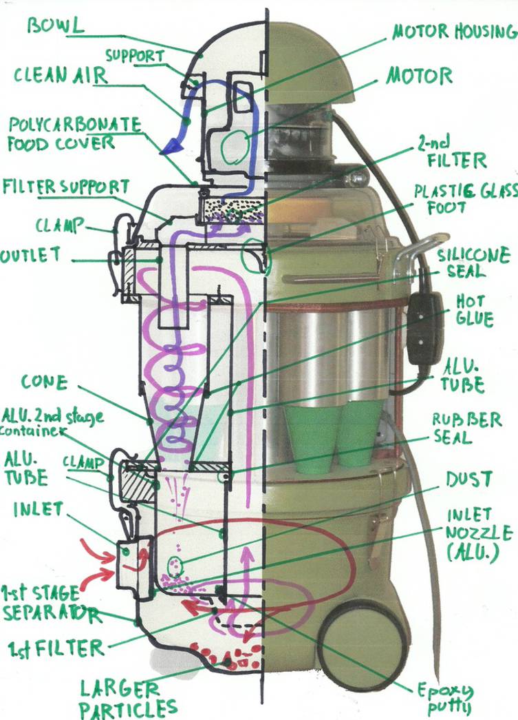 The bottom bucket comes form British "Henry hoover", the filter housing is made out of