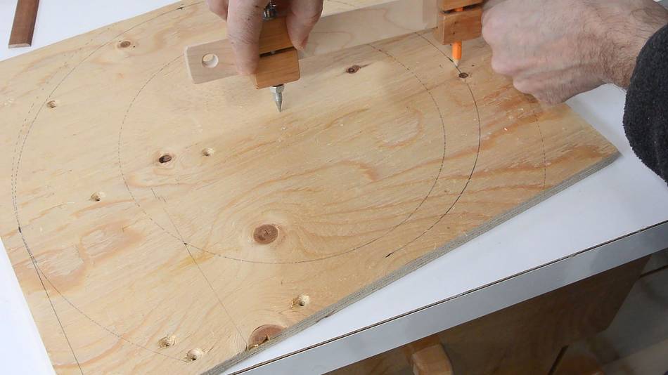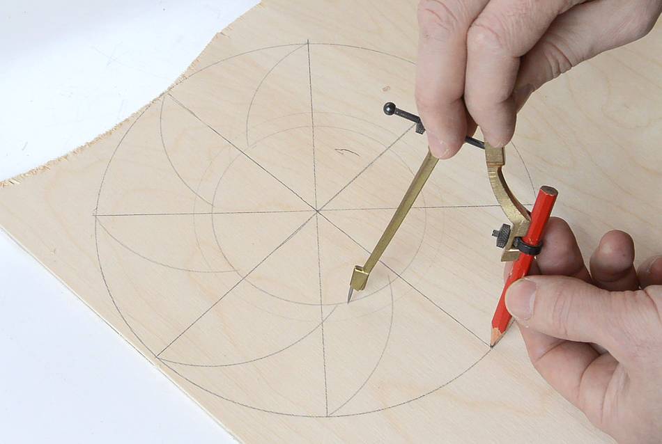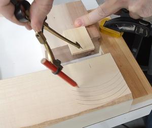 spaced arcs, controlling for the spacing using a set of callipers to move the center point
