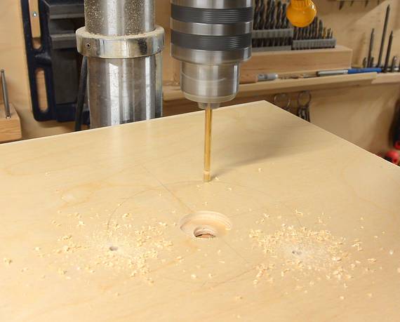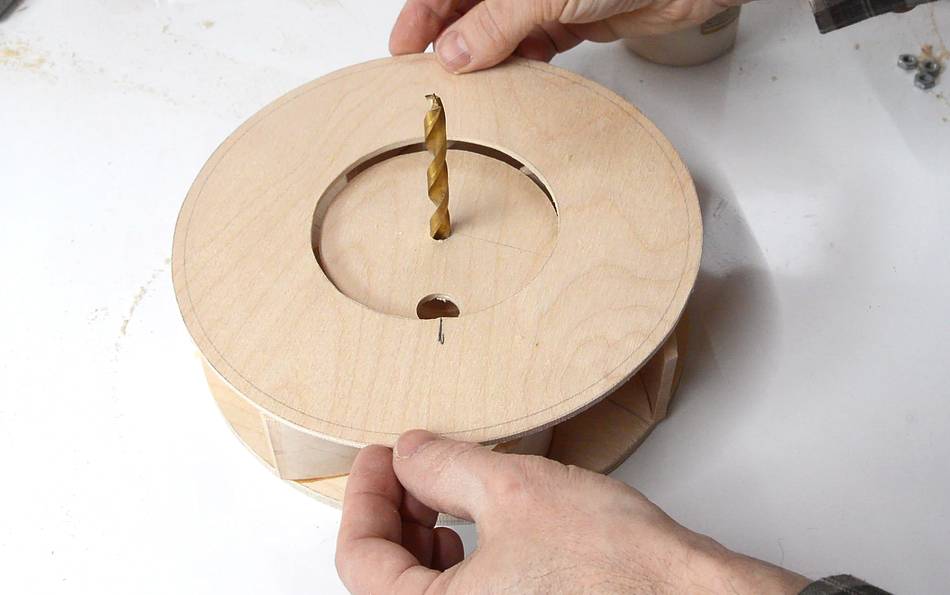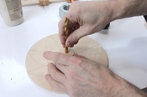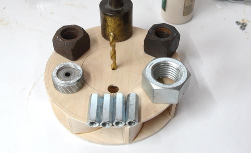 the center and then mark 120 degree angles from that and drilled out the holes.