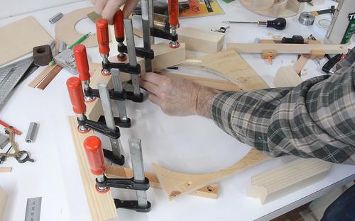Then gluing on the fins. I gave the plywood a light sanding (figuring that should remove