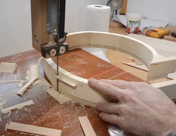 ... and added splines to reinforce the joints. I cut off the excess on the bandsaw.