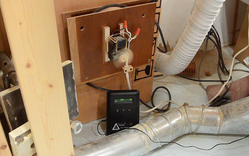The air flow for this dust collector was almost as much as at the end of the duct to my big dust collector, but checking how much dust ended up in the shop air with my Dylos, the air became much dustier than when using my big dust collector.