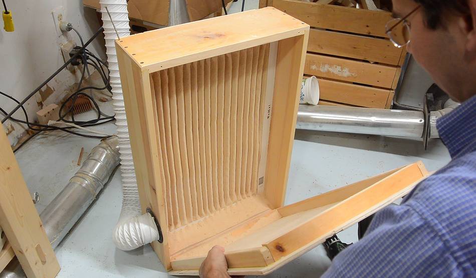 I kept getting acutal sawdust coming out of the blower on the table saw dust collector. Eventually I concluded it was blowby that I just coult not adequately seal the way the filter was folded and mounted in place. So eventually I built a different dust collector for the table saw. I previously replaced the one with a folded belt sander, as shown in this video. So the folded filter idea was a failure, but I still prefer the idea of having a dedicated dust collector for each machine over ducting and blast gates.