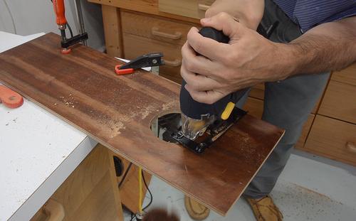Then marking the opening I need in the box and cutting it out with a jigsaw.