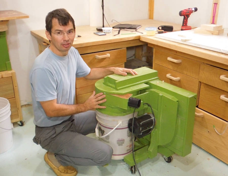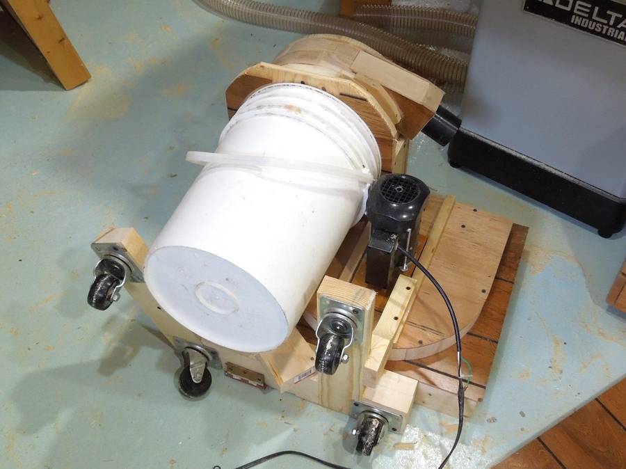 I added a ledge of plywood to help keep the dust bucket aligned on the bottom.