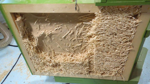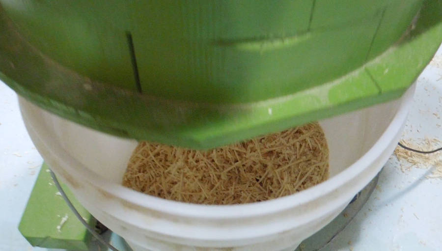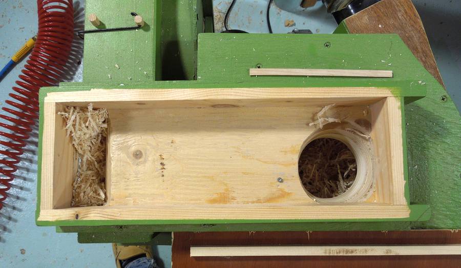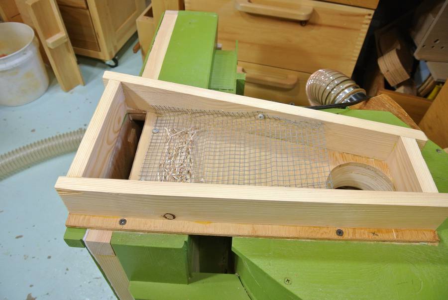 I also slightly widened the slot where chips fall down into the bucket, and added strips of felt as gaskets to cut down on leakage.