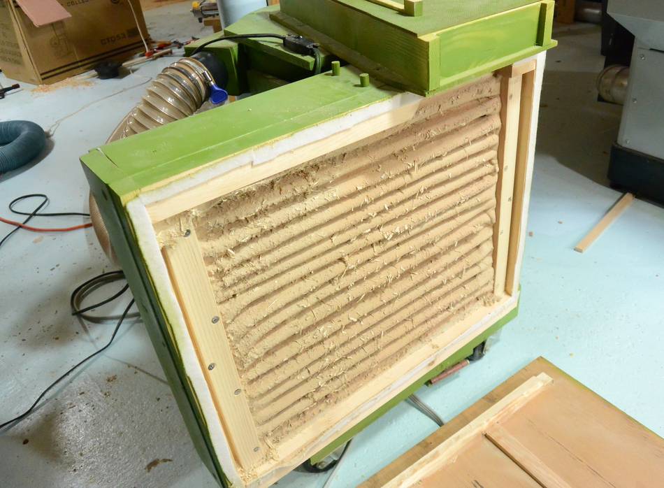 After some use, the felt is now partly caked with fine sawdust, and the particle