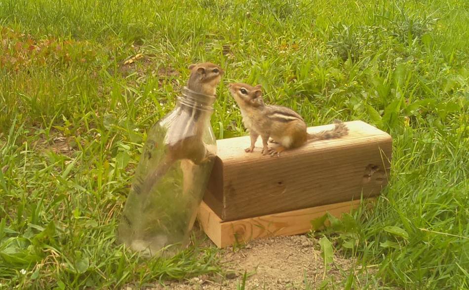 in the bottle another chipmunk came to visit. It's the picture of cuteness,
