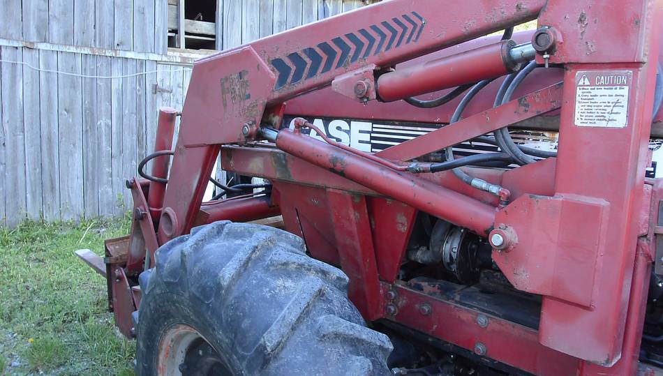 So I thought I'd build a gadget that shows me what angle the fork is at. Ironically, this tractor has two auxiliary cylinders in parallel with the bucket tilt cylinder, which, as the loader is raised and lowered, will push more hydraulic fluid in and out of the tilt cylinders to keep the fork or bucket level. Except, the hydraulics have internal leaks and sag, so I can never be sure if the forks are still level.