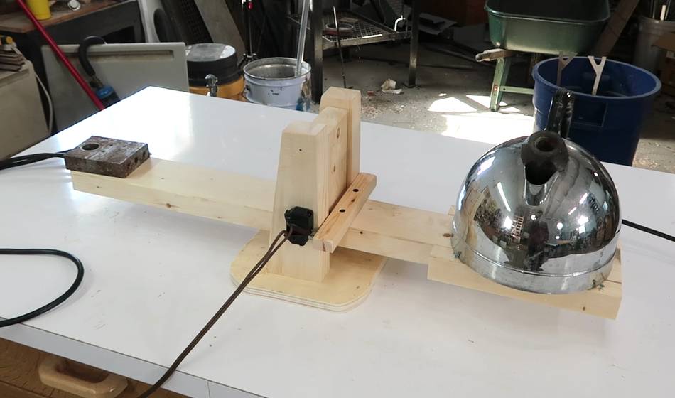 This kettle doesn't have an automatic shut off, so I can leave it boiling, but it's important to stop the boil before it runs dry. So I built this balance, which has a switch on it to cut power when the kettle gets too light.