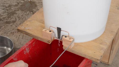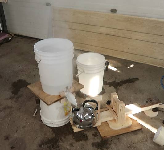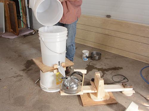 I needed a bucket with some sort of valve that opens when the kettle