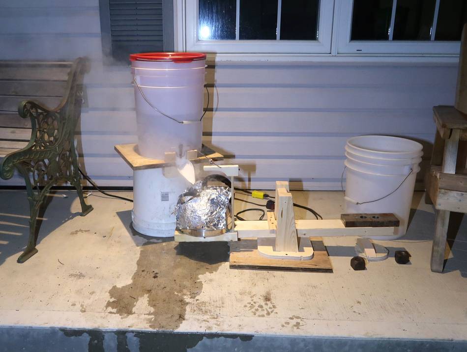 Releasing lots of steam in the workshop would be a bad idea, so I set it up outside on the