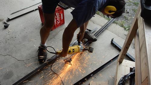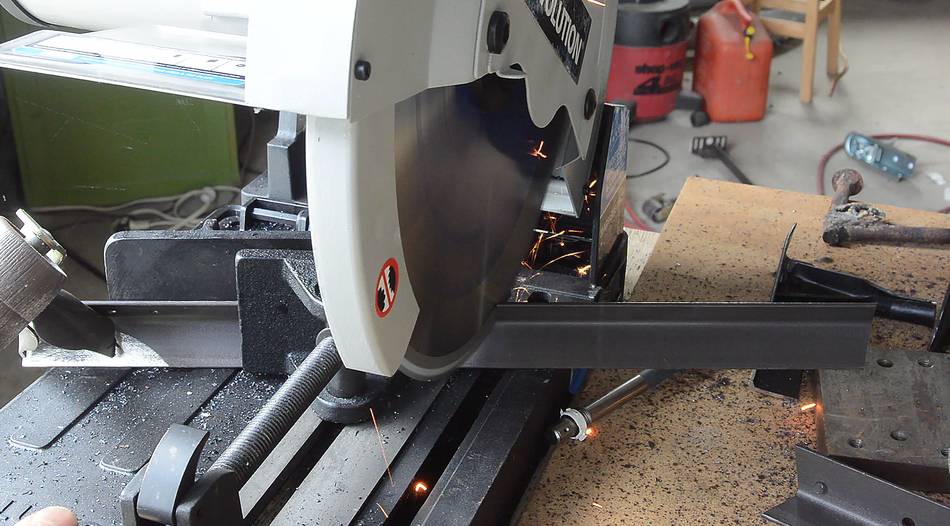 I'm using a carbide tipped "dry cut saw" to cut the angle iron.
