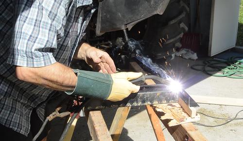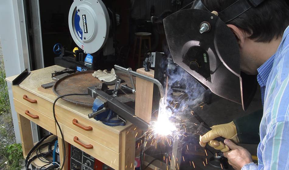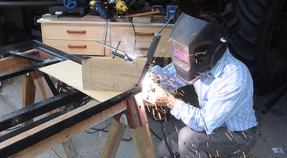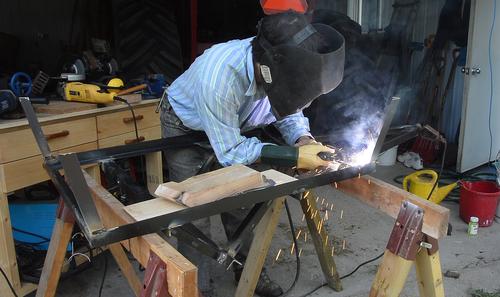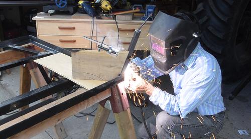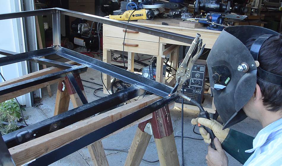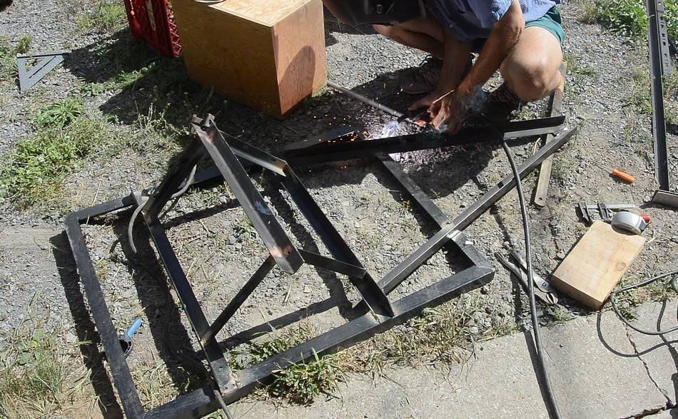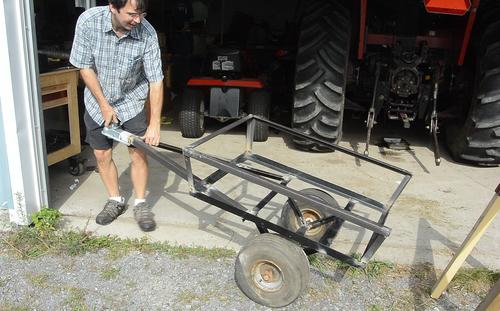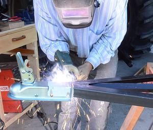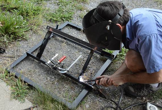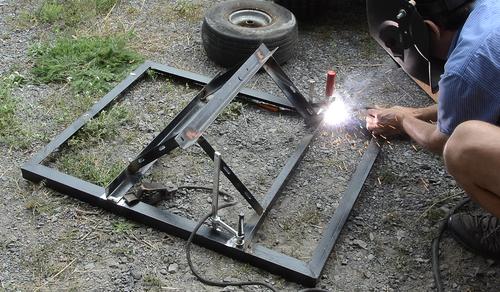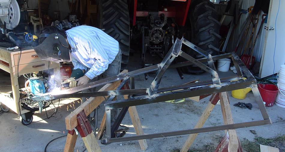 Welding on the trailer's tongue, also made out of angle iron, of course.