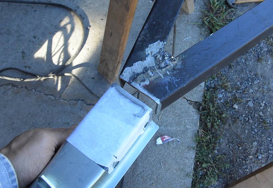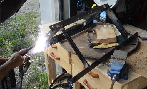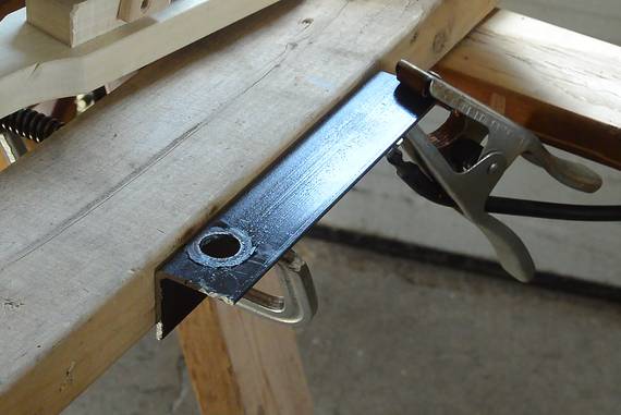 Then welding the bracket together. Two pieces of angle iron and a hollow