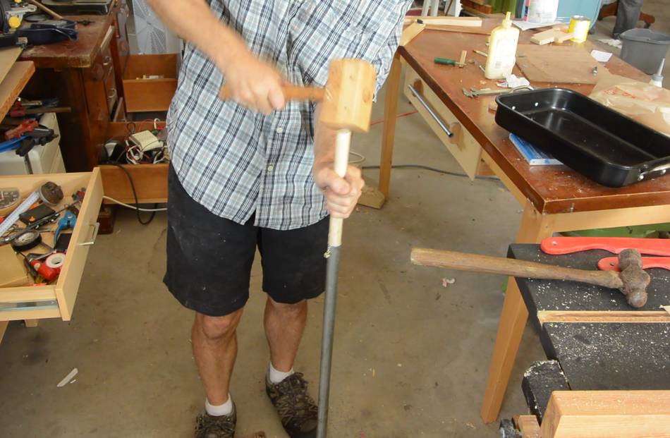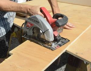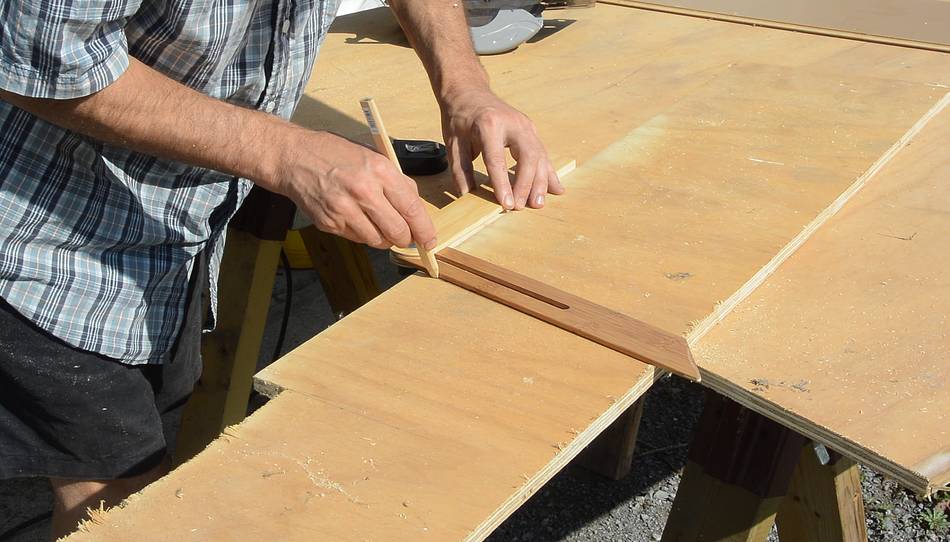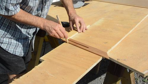 The block of wood rests on a piece of plywood as a flat "reference" surface.