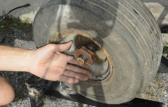 I made a plywood washer to go between the wheel and the frame. Hre I'm