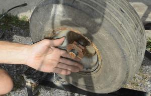 the axle after the wheel, which is held in place by a pin (a nail) through