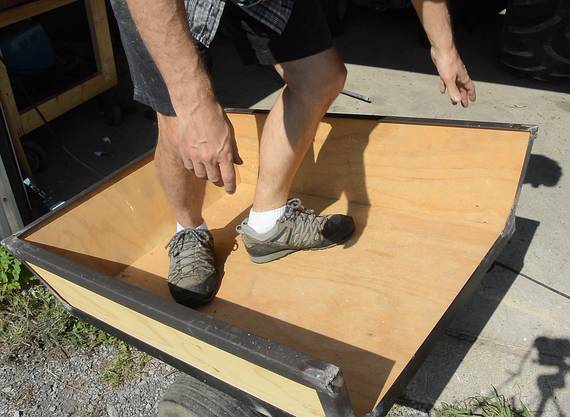 I pressed the bottom in by standing on the trailer and stomping it down. The bottom fixes the sides in place, and gravity holds the bottom down, so no part of the box needed any fasteners.