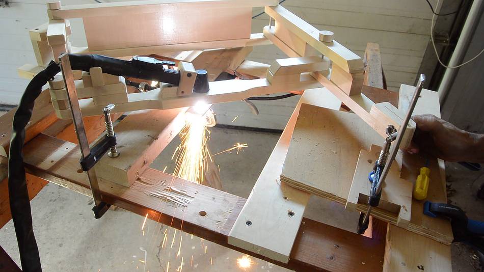 Once it was tack welded, I removed the wooden block and welded the angle iron