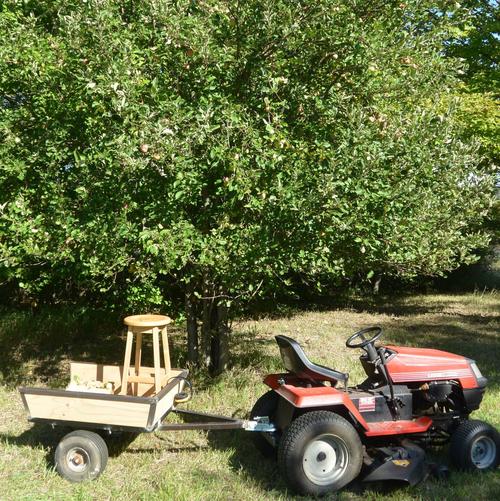 And then I picked the apples. Standing on a stool on the trailer let me get at some of the higher ones. A stepladder would have been even better, but this trailer is too small for that.