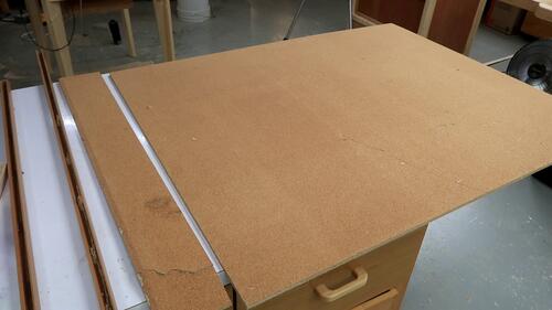 I trimmed the corkboard to final size to exactly match the frame.