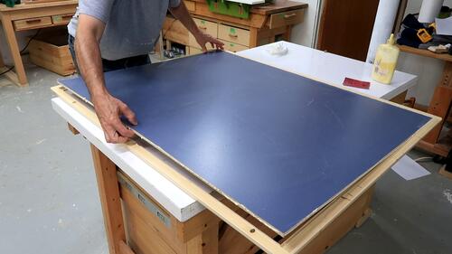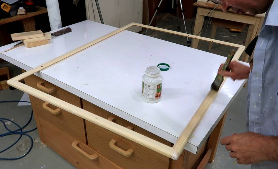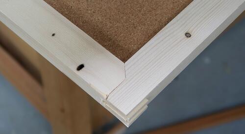 Then varnishing the frame before gluing the corkboard in.