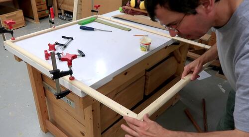 Then pushing it into the frame. A very snug friction fit.