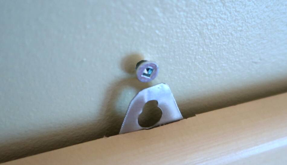 These hook into two screws in the wall, which keeps the corkboard