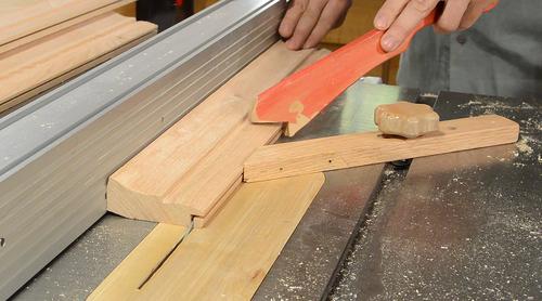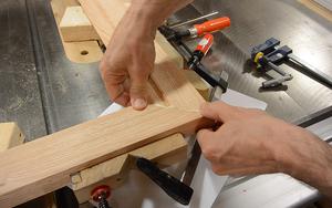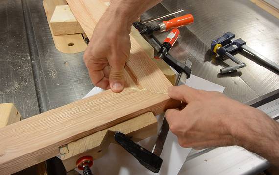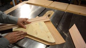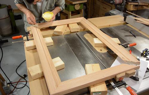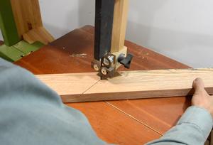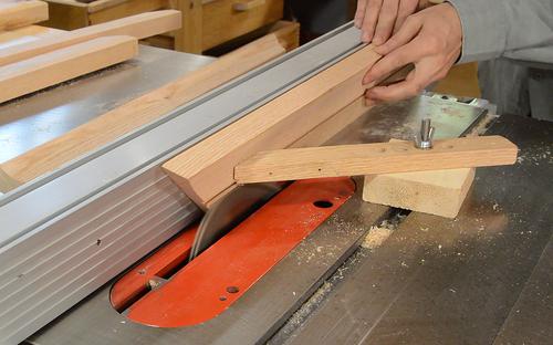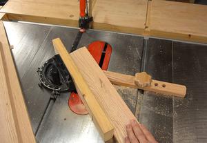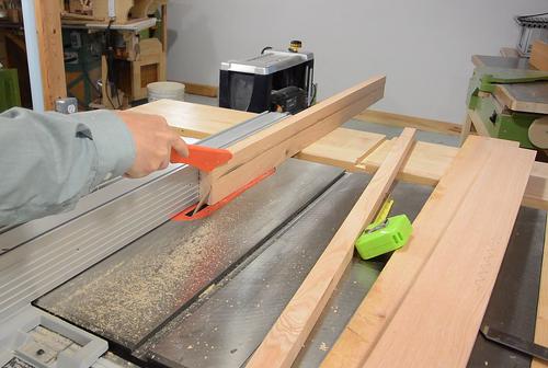 of the frame. I'm using the table saw, passing the wood