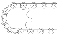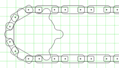 The shape of the sprocket teeth is generated based on the shape of the chain blocks,