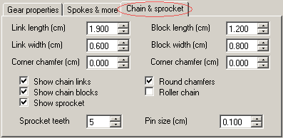 Chain & sprocket mode is turned on by selecting the "Chain & Sprocket" tab on the