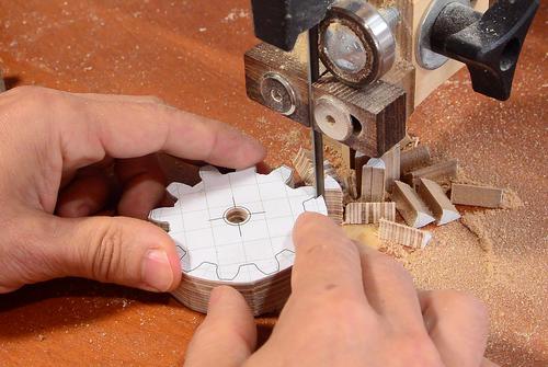 I printed out some gear templates with my gear generator and cut them out on the bandsaw.