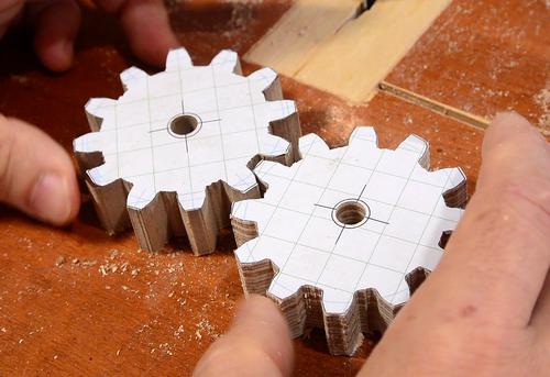 I made two gears the same size, one out of Baltic birch (which I