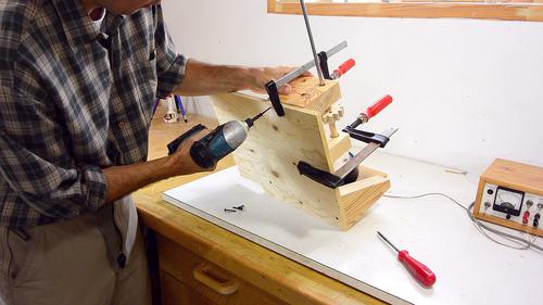 After aligning everything, I clamped the wooden blocks down, tested it,