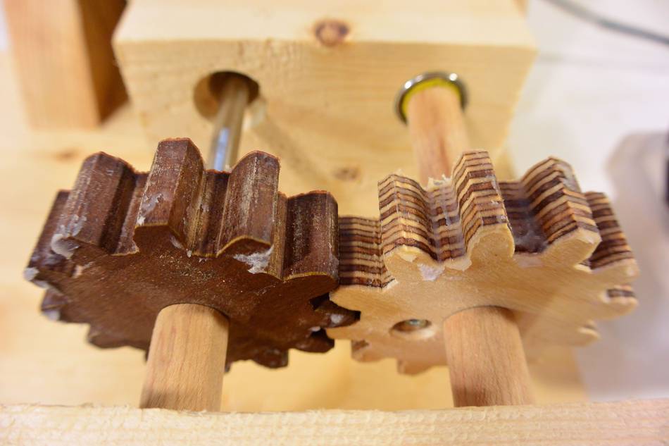 Hand cut wooden gears never run totally smooth, so I needed a relatively