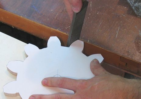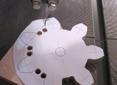 Here's some pictures of making wooden gears out of plywood using paper template from my Gear Template Generator.
