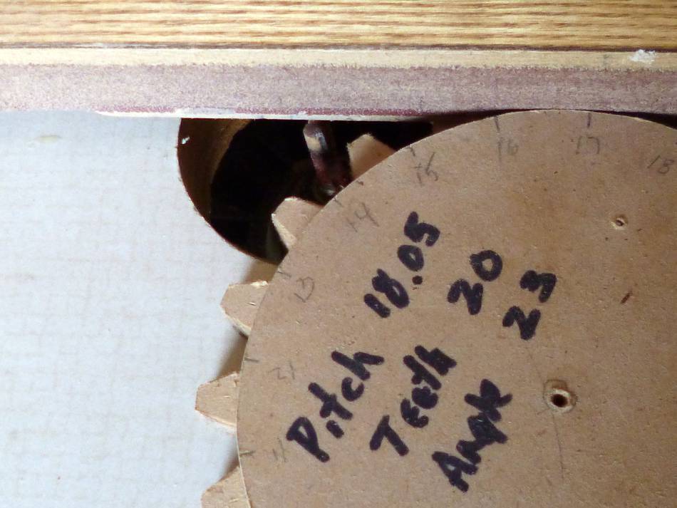 Initially I used an angle of 23°, a pitch of 12.7mm and 20 teeth.