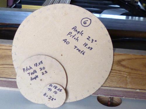 I then made a 10, another 20 and a 40 tooth sized disks and cut them.