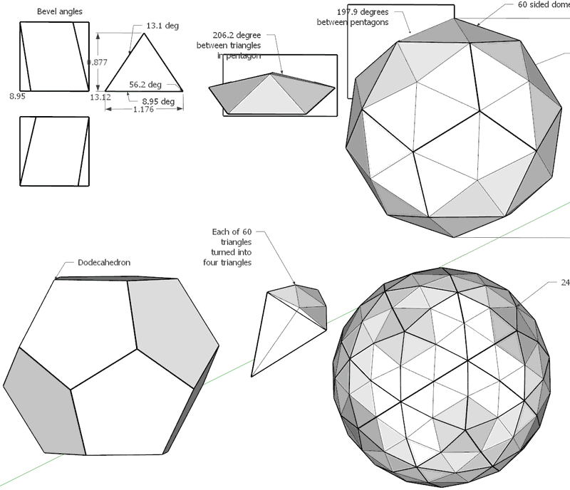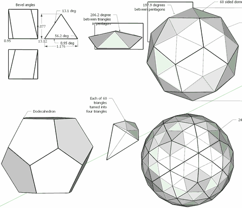 A 60 sided geodesic dome geometry can be derived from a dodecahedron