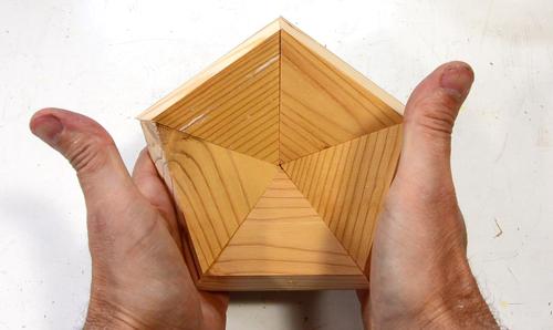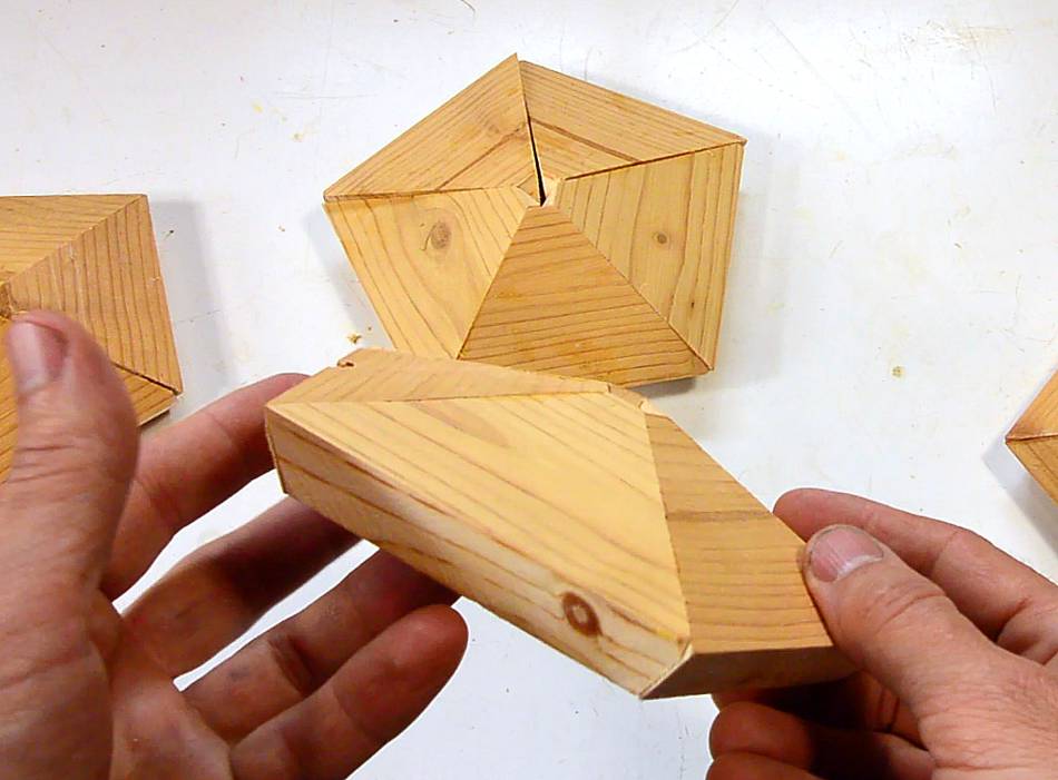 With the glue on my pentagons dry, here I'm checking how three of them will