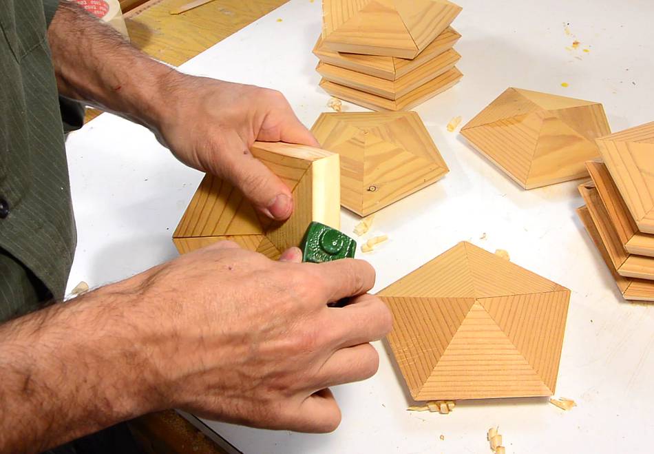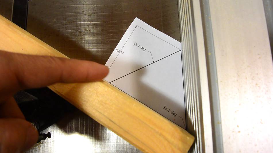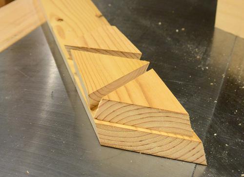 The triangles can be cut off one by one by just flipping the board upside down (not end to end) and making another cut. Don't forget to change the blade tilt to 13.1 degrees as well.