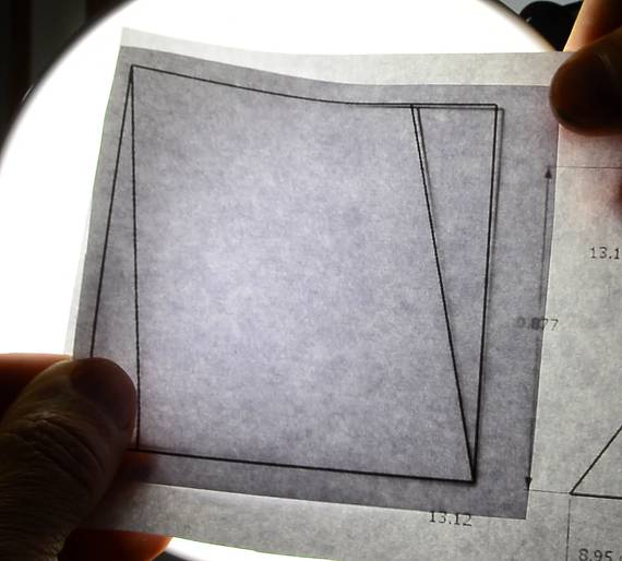Then laying the two squares on top of each other in front of the lamp, I can check that both squares are still the same, which rules out distortion from the printer.
