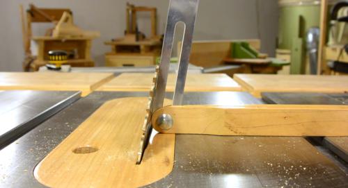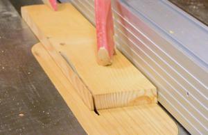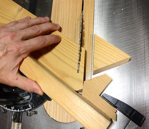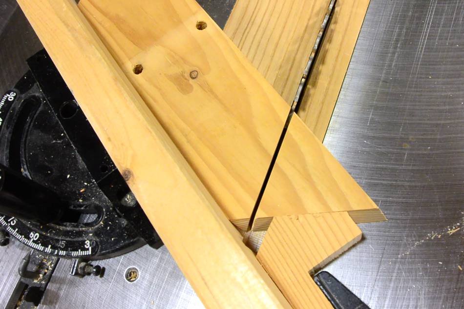 Next I set the miter gauge to the angle of the triangles, using the fence as