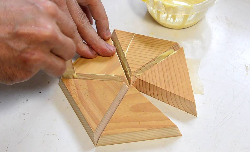 This is my first time using tape as clamps. People have sent me this suggestion many times, especially after this article. Based on my experience, I don't think using tape is a good method for clamping. It's the best method I could think of for this shape, but still not a very good method.
