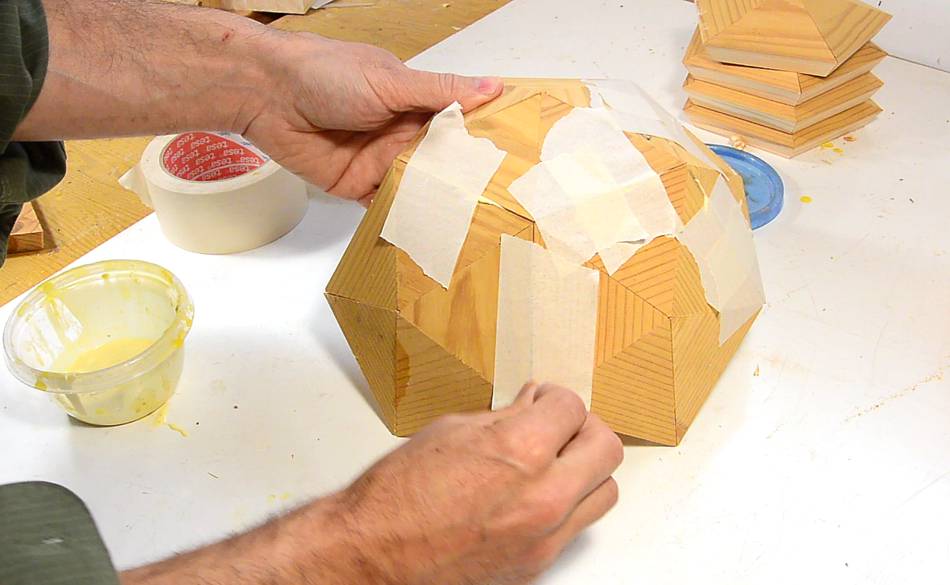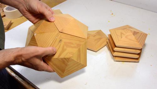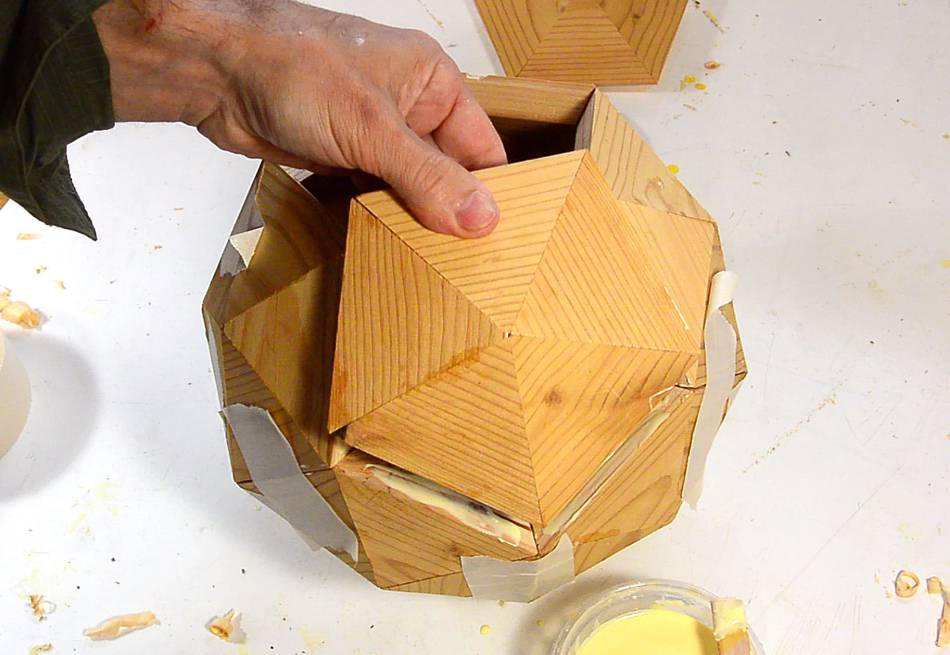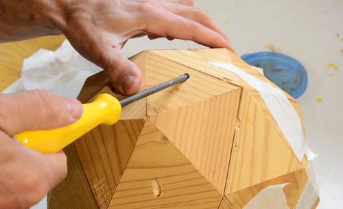 That said, the whole thing might have been easier to assemble with pocket holes than with tape. With pocket holes, I could really pull the pieces together. But pocket holes would have been a lot more work, and then I'd have ugly pocket holes all over the final ball.