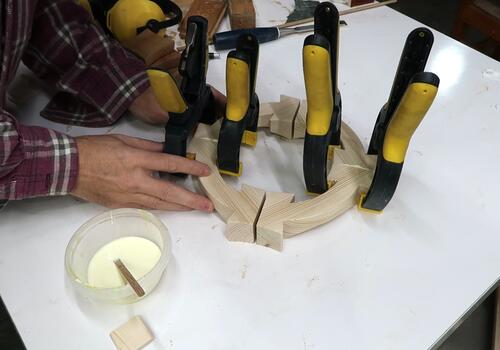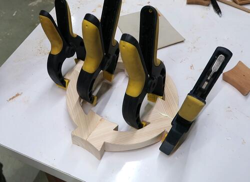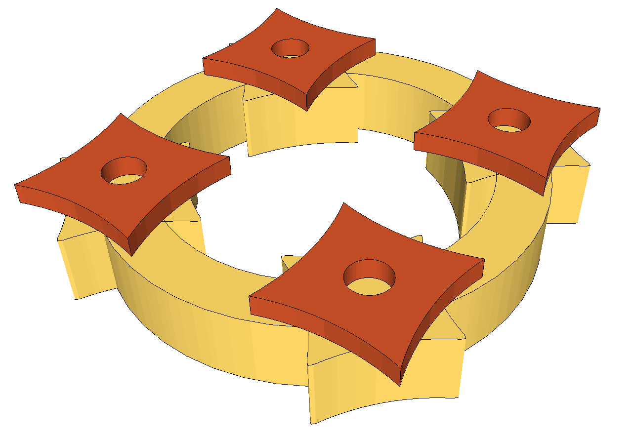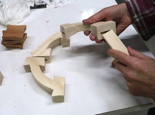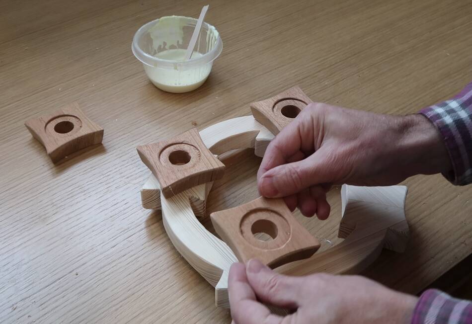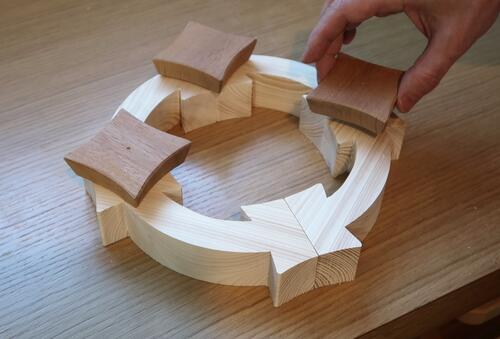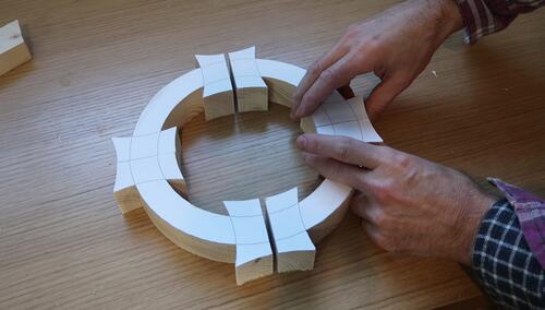 The squares that go on top of the main ring are made of a darker wood. I tilted