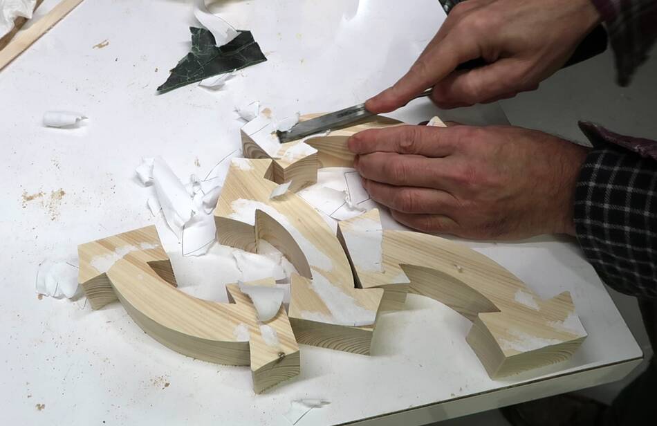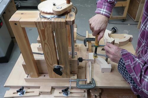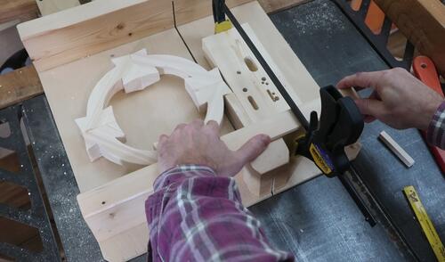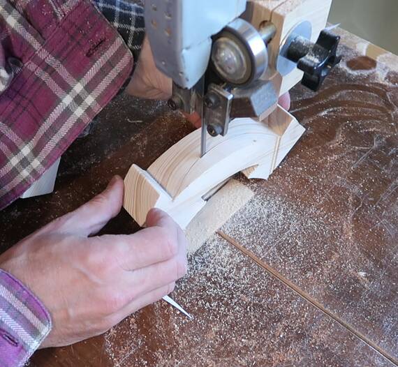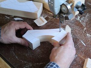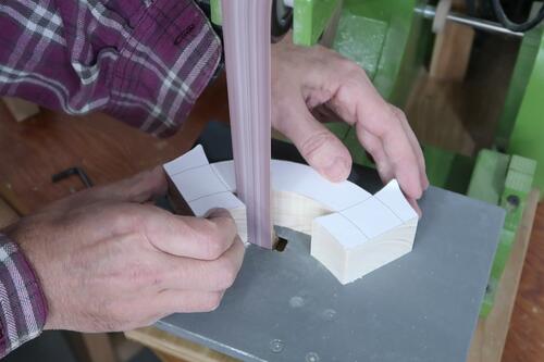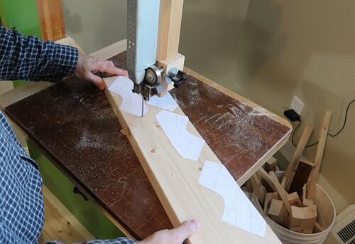an arc on all the curved pieces, then cut that out on the bandsaw